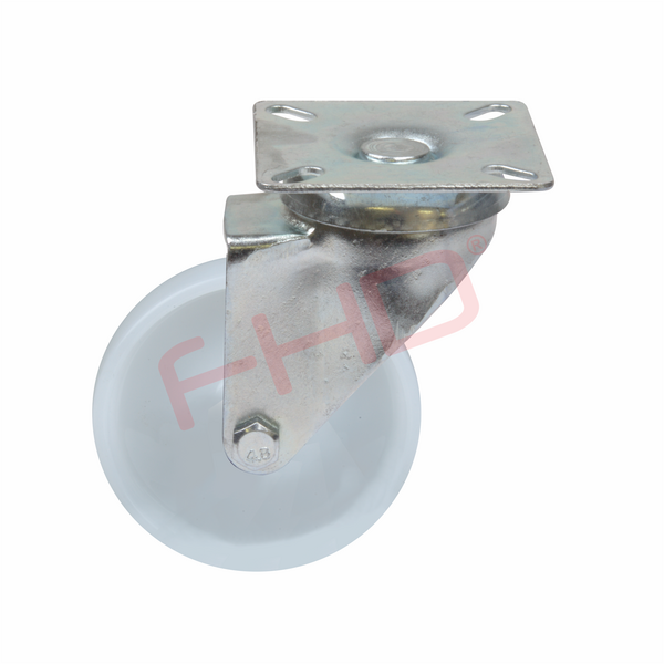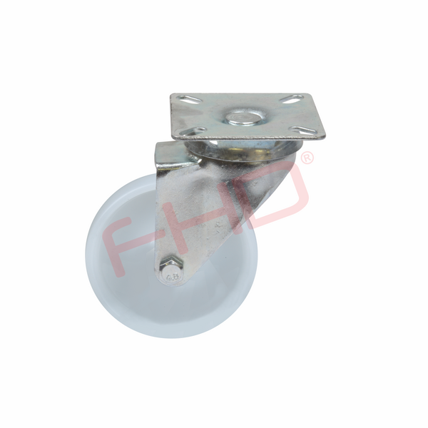 Industrial Castor with Plate, White Nylon Wheel